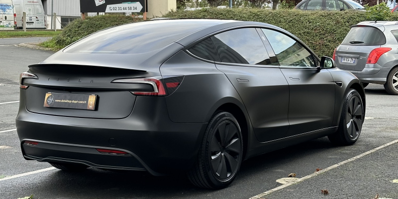 Découvrez cette Model 3 Tesla avec un look affirmé grâce à la finition satinée.